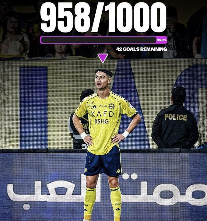 截至目前,C罗职业生涯总进球数已达958球,距离历史性千球大关仅差42球。这一数字仍在稳步逼近,而他的稳定性也令人惊叹——跨越四个十年,从曼联到皇马、尤文、曼联二进宫,再到如今的沙特联赛,他始终是进球机器。